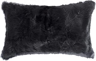 Natural and Co. うさぎの毛皮枕 12インチ x 20インチ - ブラック
