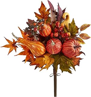 Nearly Natural 20インチ パンプキンとメープルリーフ 造花ブーケ (2個セット) オレンジ