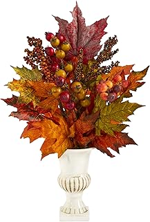 Nearly Natural 20インチ カエデの葉と果実の人工アレンジメント 白い骨つぼ