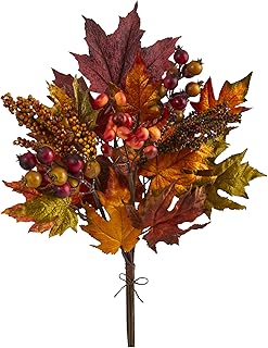 Nearly Natural 20インチ メープルリーフとベリーの造花ブーケ (3個セット) オレンジ