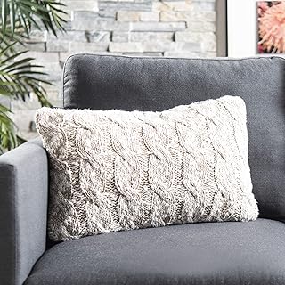 Safavieh枕コレクションChunky Knit and Natural 12 " x 20インチ、ストーン