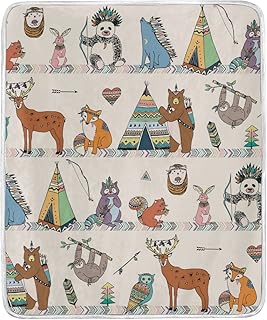 Vantaso ブランケット スローソフト トライバル アニマル 森林 熊 フクロウ キッズ 女の子 男の子 50x60インチ