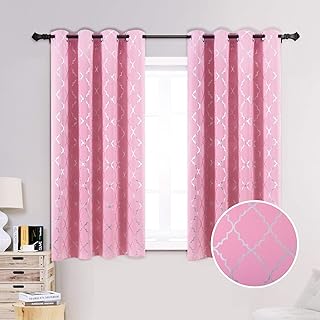 Anjee 63インチ 遮光カーテン モロッコ柄 遮光ウィンドウドレープ 上部にハトメ付き 52 x 63インチ ピンク