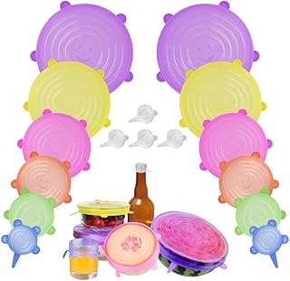 hombrima シリコンストレッチ蓋 16個パック 再利用可能 食品保存カバー BPAフリー 様々な容器 大皿 皿 瓶 ボウル 果物 食洗機 電子レンジ 冷凍庫用