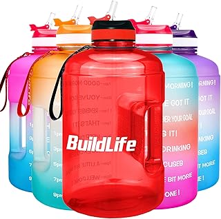 BuildLife ガロン モチベーションアップウォーターボトル 毎日飲む時間マーク入り BPAフリー 再利用可能 ジム スポーツ アウトドア 大容量 128オンス (レッド、1ガロン)