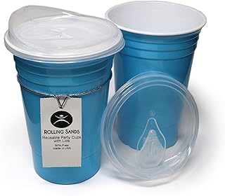 Rolling Sands 再利用可能 BPAフリー 16オンス ターコイズ パーティーカップ 蓋付き 2個パック 米国製