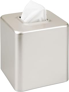 mDesign モダンスクエアメタルペーパーフェイシャルティッシュボックスカバーホルダー バスルーム化粧台カウンタートップ 寝室ドレッサー ナイトスタンド 机 テーブル用 サテン