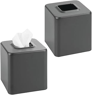 mDesign モダンスクエアスチールペーパーフェイシャルティッシュボックスカバーホルダー バスルーム化粧台カウンタートップ 寝室ドレッサー ナイトスタンド デスク、オフィス、テーブル用 ユニティコレクション 2個パック グラファイトグレー