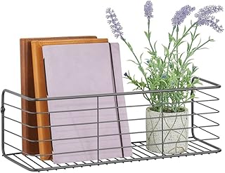 mDesign ワイドメタル壁装飾ストレージオーガナイザー ディスプレイシェルフ – バスルーム、キッチン、玄関、廊下、寮、寝室、洗濯室に吊るす – 壁取り付け – グラファイトグレー