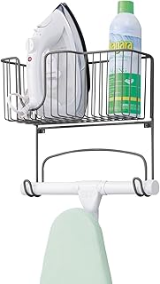 mDesign 金属壁取り付けアイロン台ホルダー 大きな収納バスケット付き アイロン/ボード/スプレーボトル/スターチ/ファブリックリフレッシャー ランドリールーム用 グラファイトグレー