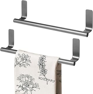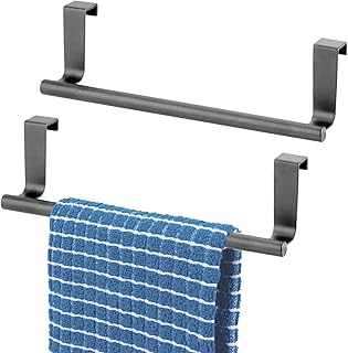 mDesign 装飾メタルキッチンキャビネットタオルバー – ドアの内側または外側に掛けられます – 手、食器、ティータオル用の収納とディスプレイラック – 幅9.8インチ 2パック – グラファイトグレー