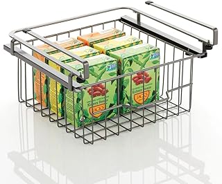 mDesign 金属製 棚下吊り下げ収納オーガナイザー ビンバスケット キッチンのパントリー、キャビネット、食器棚、棚の整理に - 多目的モダンなファームハウスグリッドスタイル - グラファイトグレー