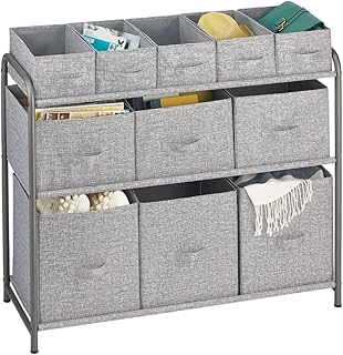 mDesign 幅広 3段 ソフト収納オーガナイザー ビン付き 頑丈なスチールフレーム 簡単に引っ張れるファブリックビン 11個の取り外し可能なビン付き 寝室 廊下 玄関 クローゼット用オーガナイザー グラファイトグレー/グレー