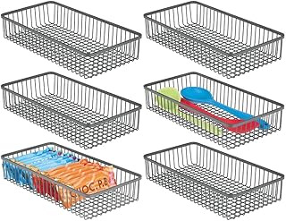 mDesign メタルファームハウスキッチンキャビネット引き出しオーガナイザートレイ - カトラリー用ストレージバスケット サービングスプーン 調理器具 ガジェット 6個パック - グラファイトグレー