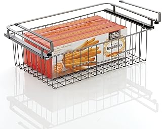 mDesign 大型メタルワイヤー吊り下げ引き出しバスケット – スライド棚下ストレージオーガナイザー – 棚への取り付け – 取り付け簡単 – グラファイトグレー