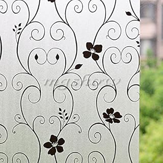 FUT(エフュ ト) 自己粘着PVC撥水加工窓用フィルム 遮光断熱/UVカット/虫よけ/目隠し/日焼け止め目隠しシート 部屋/リビング/浴室/店舗/オフィスガラスフィルム ブラックフラウー柄45*1000cm
