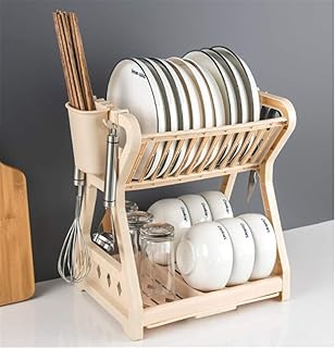 gcywj ディッシュラック 食器 水切り 天然木製 水切りラック 折りたたみ式 2段式 ディッシュスタンド 水切りかご 食器棚 お皿立て 食器ホルダー 収納 プレート スタンド ナチュラル 台所 便利グッズ