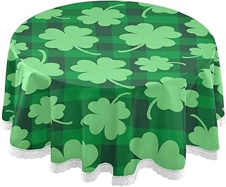 聖パトリックデー クローバーテーブルクロス シャムロック グリーン バッファロー チェック 格子縞 円形テーブルクロス 円形テーブルカバー クロス 洗濯可能 ポリエステル テーブルトップ ランナー キッチン パーティー ピクニック ダイニング装飾 60インチ