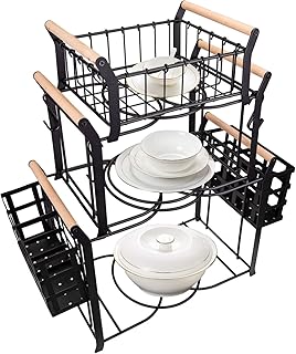 Suwimut 3段ビュッフェキャディ 10個 積み重ね可能 プレート ナプキン 銀食器ホルダー 台所 ダイニングテーブル エンターテイメント パーティー ピクニック ブラック