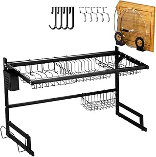 シンク上 食器乾燥ラック 水切り棚 キッチン乾燥ラック オーガナイザー サプライ 収納 カウンター キッチン 省スペース キッチン用品ホルダー ステンレススチール ブラック (33.46 20 12.2インチ)