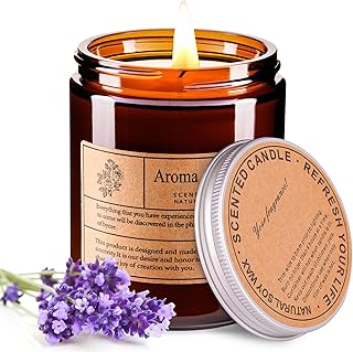 ラベンダーキャンドル 長持ちする香り付きキャンドル 7オンス 手作り天然大豆キャンドル アロマテラピーキャンドル アンバーガラス ユーカリとラベンダーキャンドルの完璧なブレンド 女性へのギフトに