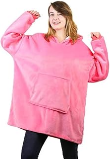 ウェアラブルブランケット パーカー オーバーサイズ スウェットシャツ ブランケット 大人用 レディース メンズ 厚手 スーパーソフト 暖かい フード付きブランケット 大きなポケットと袖付き ピンク