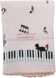 コージカンパニー ガーゼハンカチ 猫と音符 日本製 裏面パイル地 25×25cm ピンク 501393